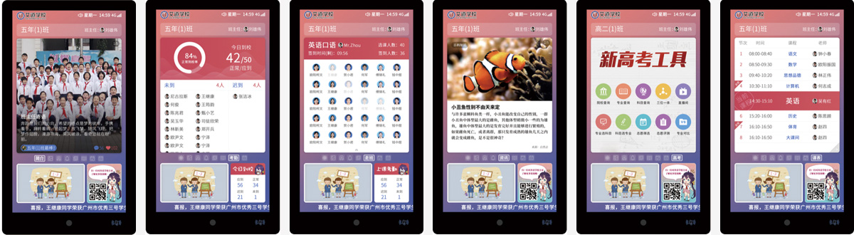 慧能智慧班牌服務于普教全學段來自于全國各個地區的學校,也為不同學段不同地區的學校個性化需求,甚至同一地區同一學段的不同學校的個性化需求提供了完美的解決方案,做到了硬件配置的高適應性與軟件選擇的高個性化。